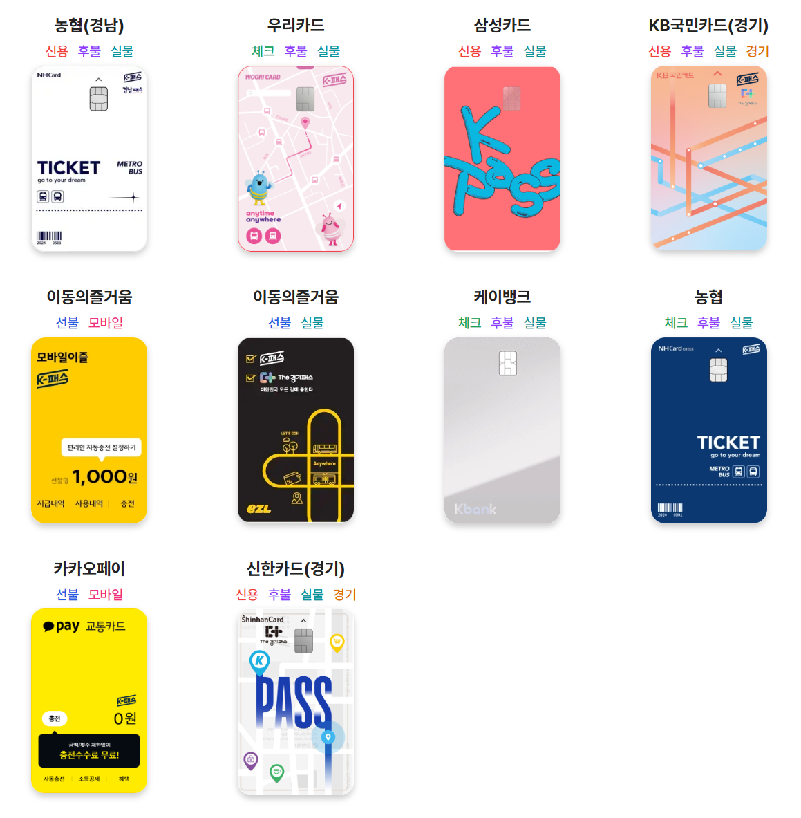 K패스는 현재 신한, KB국민, 우리카드 등 10개 주요 카드사에서 참여하고 있어요. 카드사에 따라 부가 혜택이 조금씩 다르기 때문에 어떤 카드를 선택할지 고민될 수 있죠.